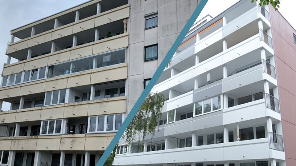 Eine professionelle Sanierung bringt den Balkon nicht nur technisch auf den neuesten Stand, sondern verbessert auch deutlich das Erscheinungsbild und die Nutzbarkeit. Im Folgenden zeigen wir Ihnen typische Sanierungsabläufe anhand von Beispielbildern – aufgeteilt in die drei Phasen „vorher – während – nachher“.